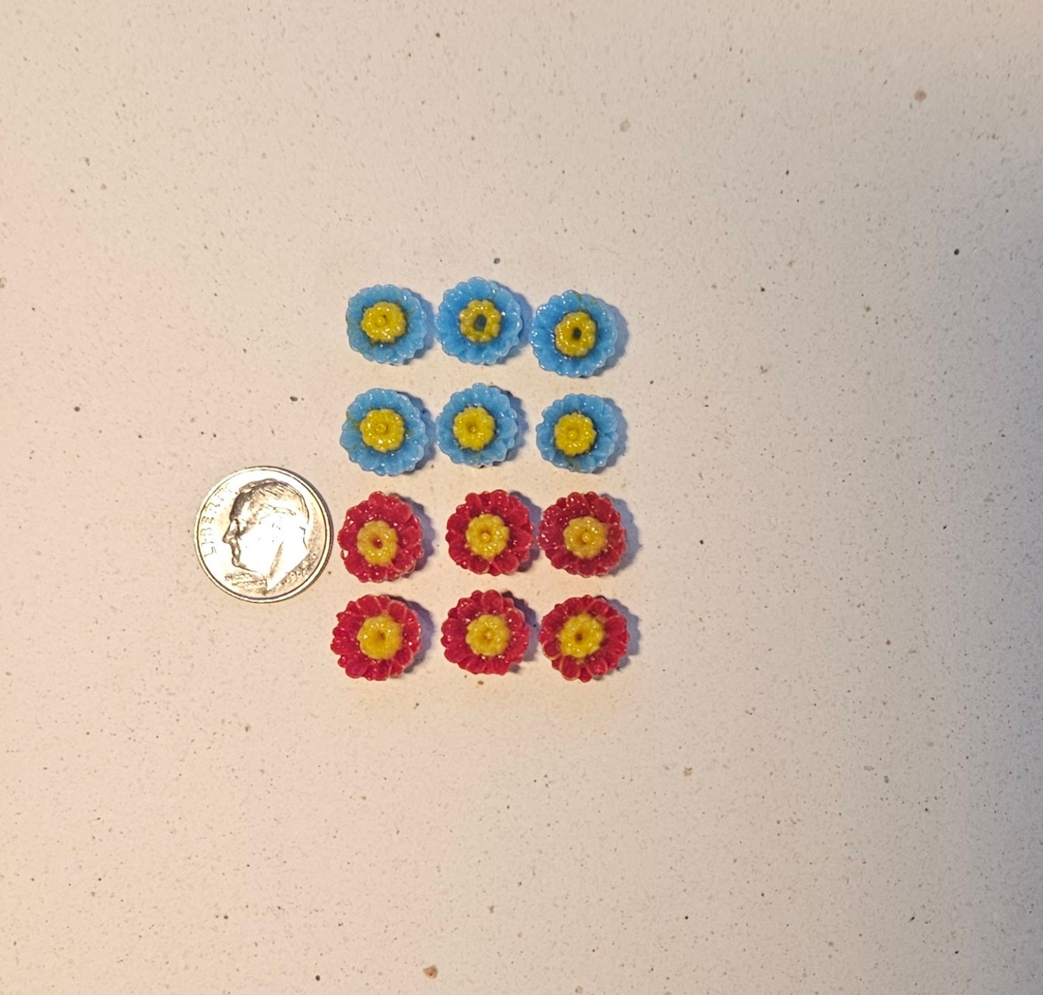 Small flower assortment - includes 12 small flowers that measure approximately 10mm in diameter (.40 inches)