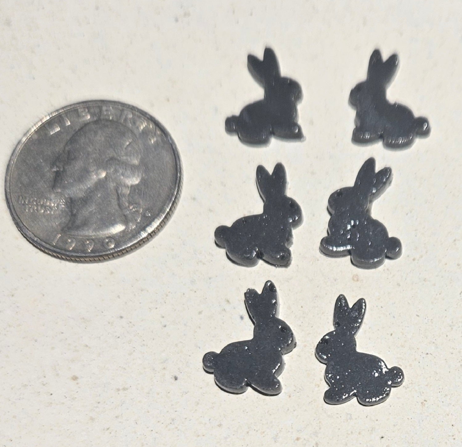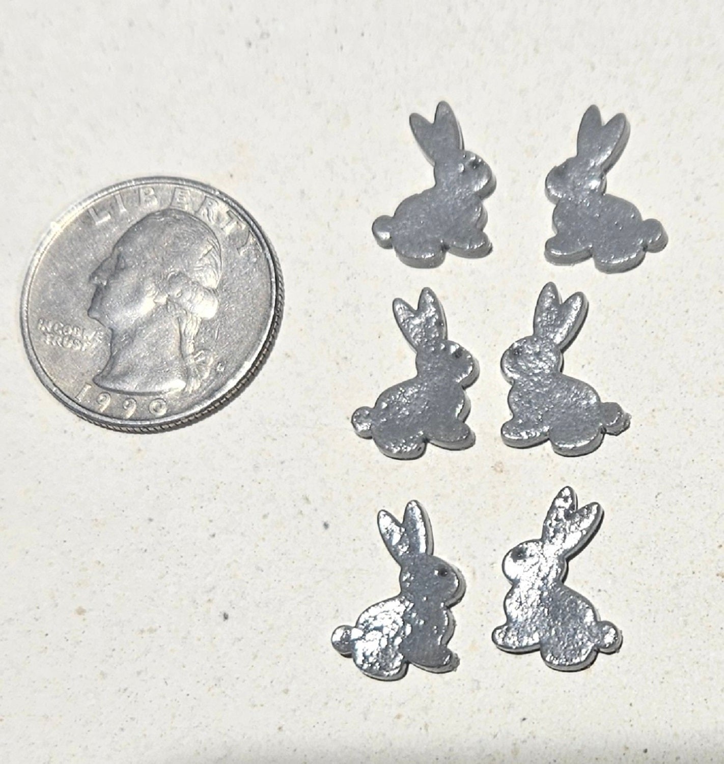 Tiny Bunnies (6 each 3 left facing 3 right facing) measure 15.7mm tall x 11.2mm wide (.61inch tall x .44 inch)
