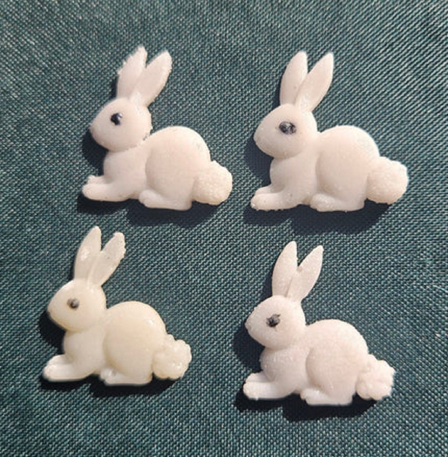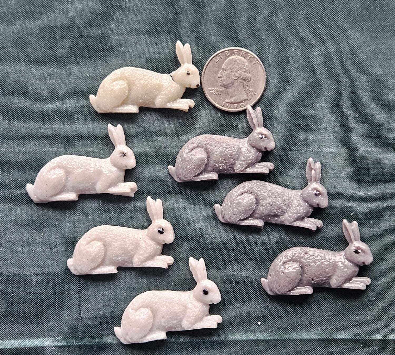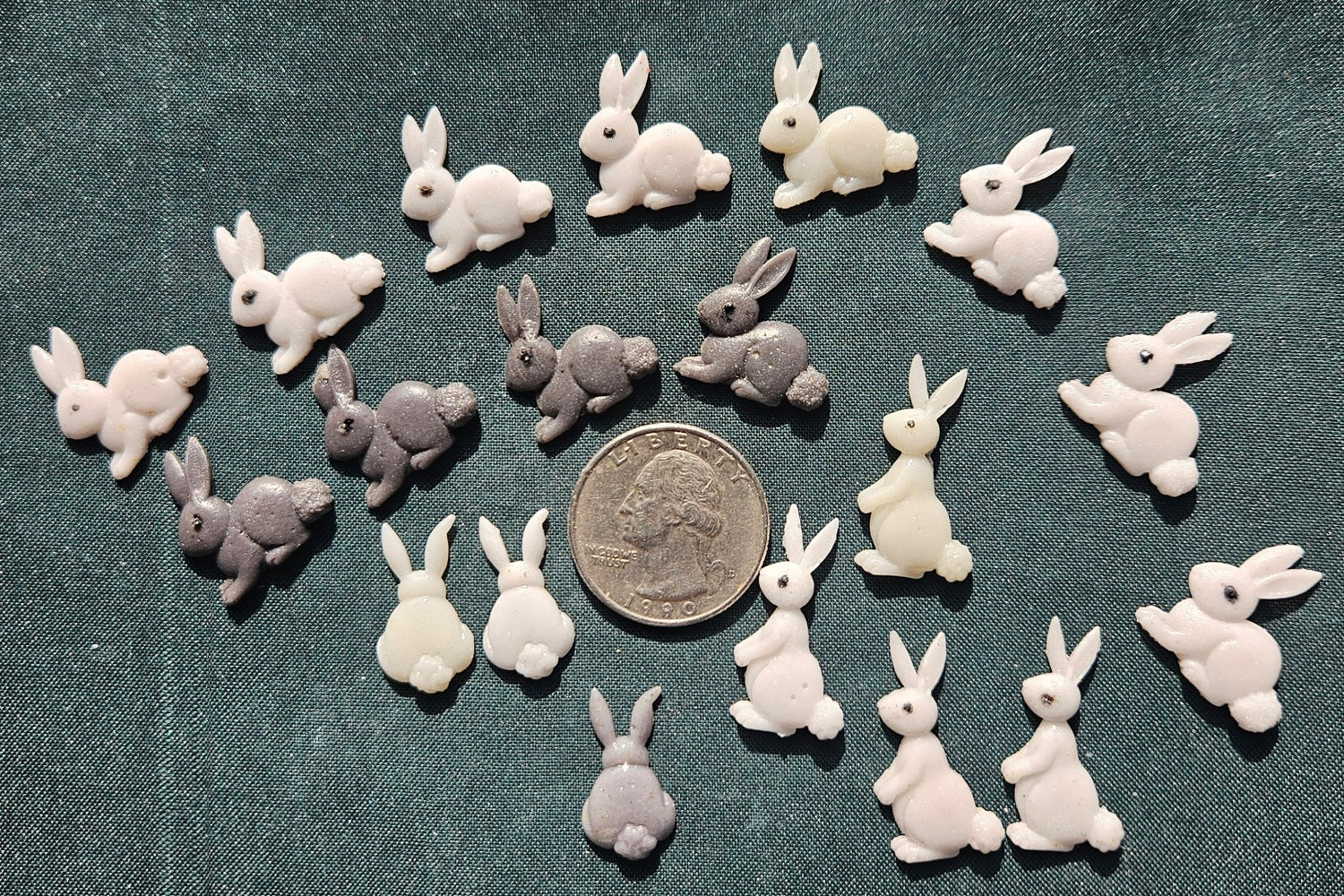 Small Bunnies (4 each) measure 19mm tall x 18mm long (.75 inch x .71 inch)